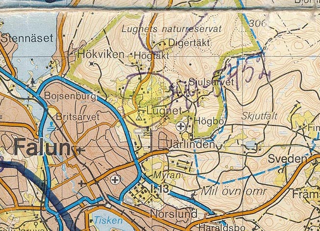 Inritning på orginalkarta